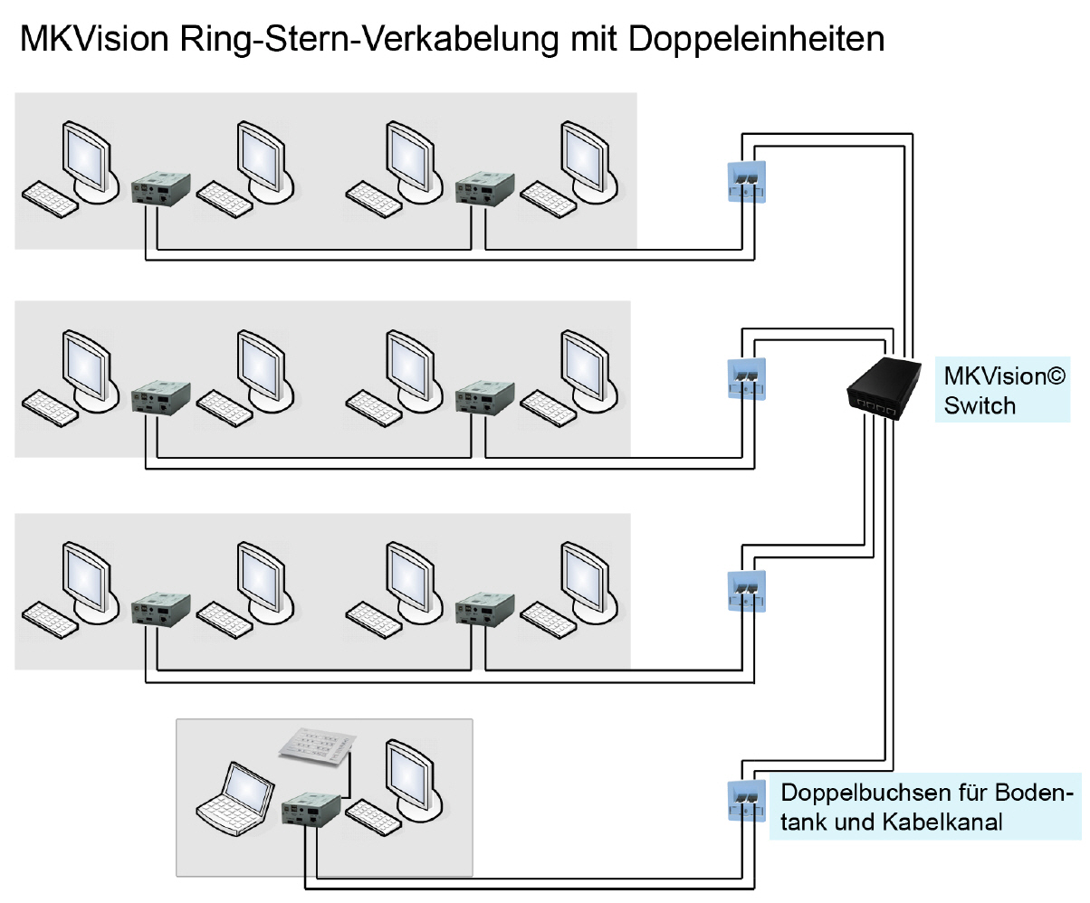 - Keine Spezialkenntnisse erforderlich, Aufbau mit Patch-Kabeln